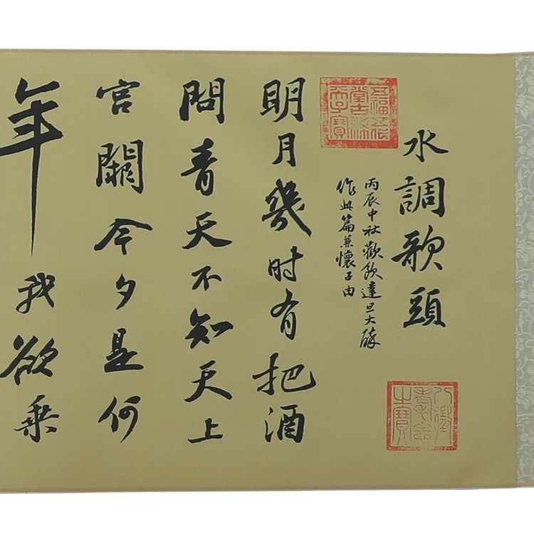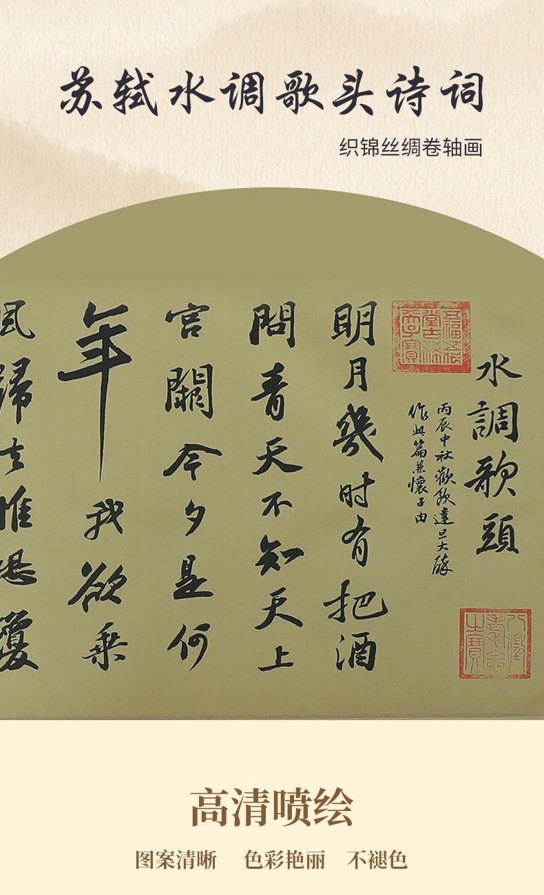 苏轼水调歌头诗词丝绸画