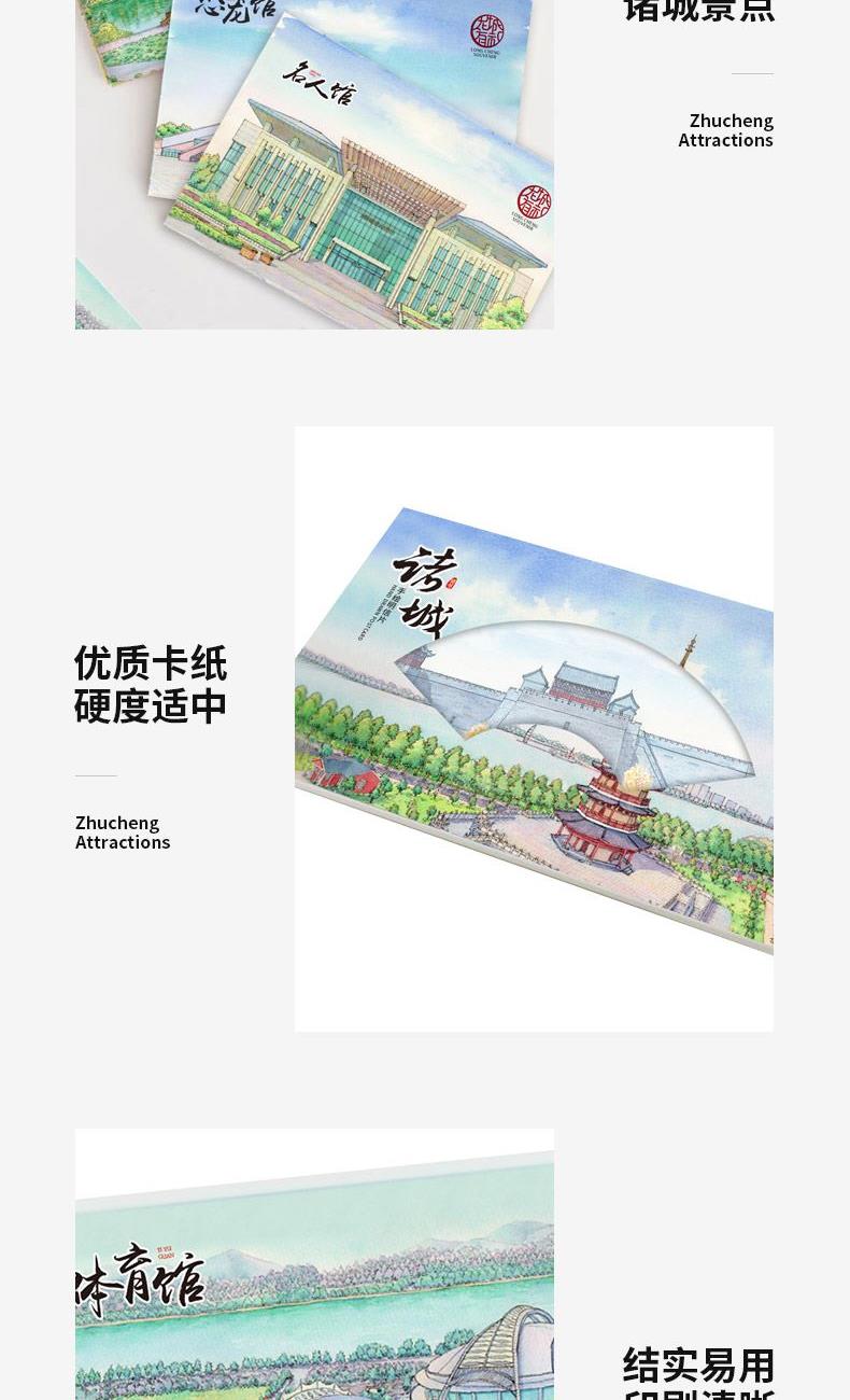 龙城十二景产品,依次为十二景帆布包、明信片。通过蔡家沟、常山文博苑、超然台、恐龙博物馆、潍水之灵、等风景、在方寸之间体会诸城之美,在于山水之间,在于悠久历史,在于风土人情。