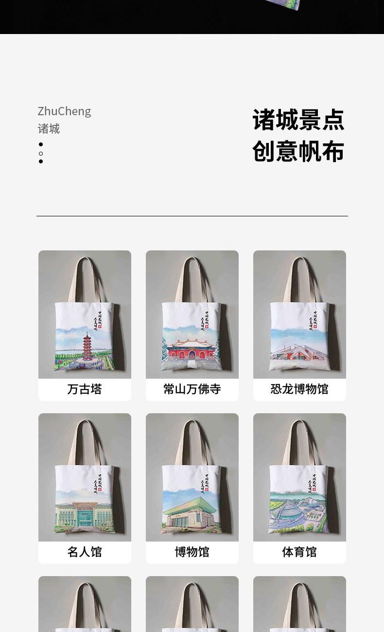 龙城十二景产品,依次为十二景帆布包、明信片。通过蔡家沟、常山文博苑、超然台、恐龙博物馆、潍水之灵、等风景、在方寸之间体会诸城之美,在于山水之间,在于悠久历史,在于风土人情。